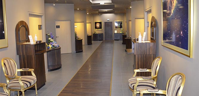 Une partie publique avec un hall d’accueil, un espace détente, une salle de cérémonie et dessalons privatifs.
